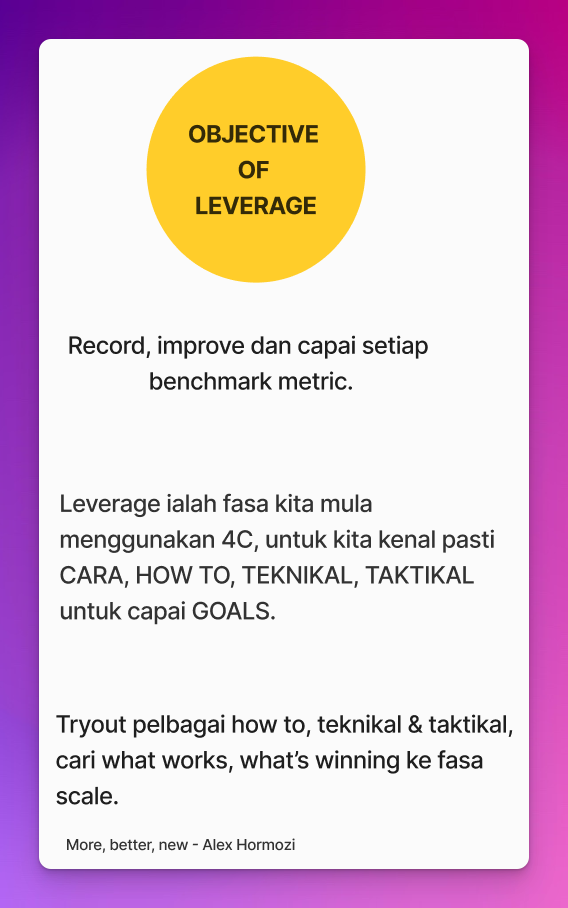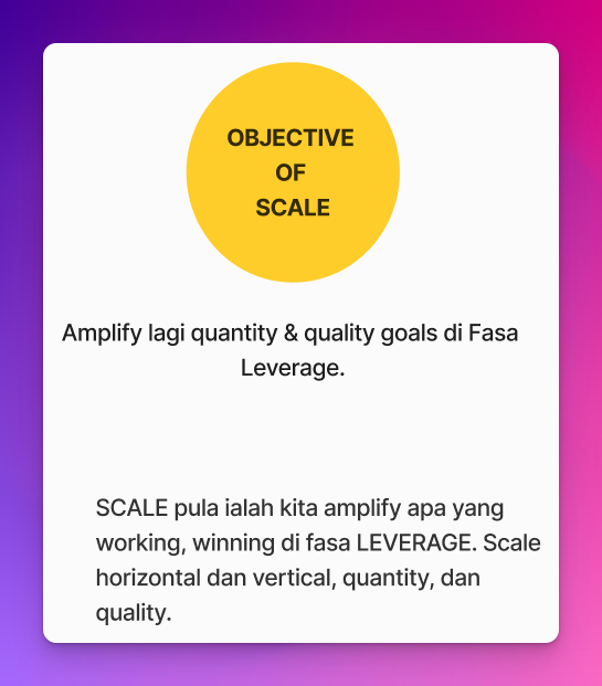 Fasa ini adalah di mana anda akan amplify result yang proven di fasa Leverage.