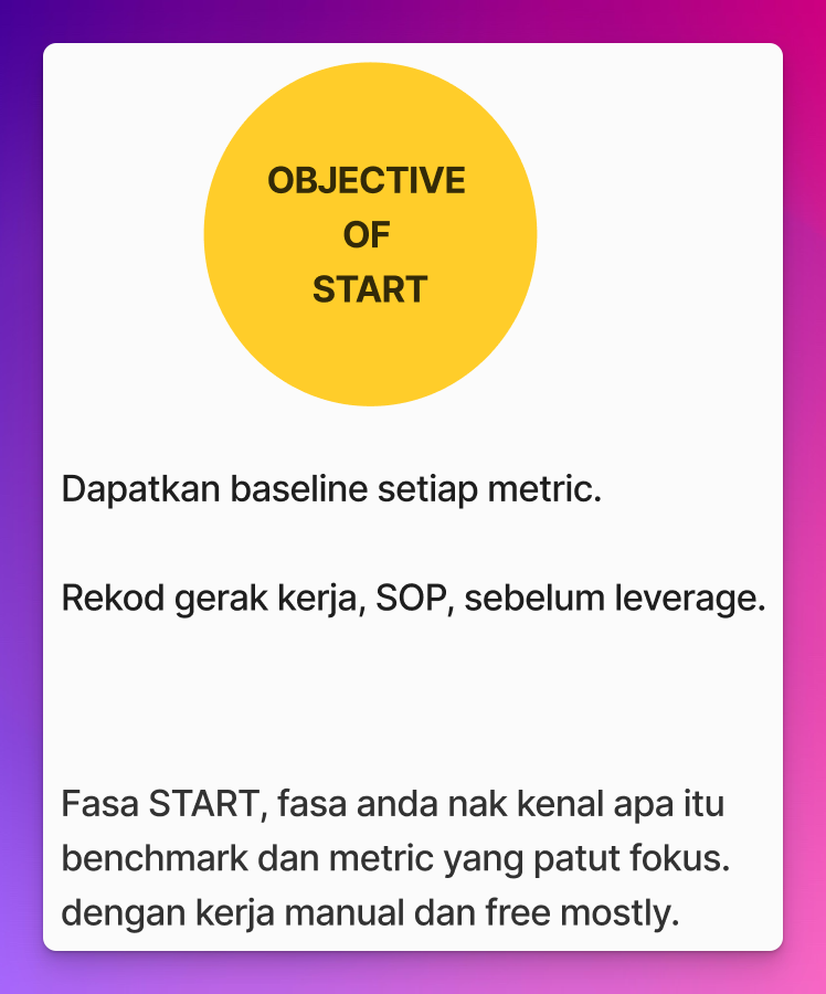 Di sini ialah fasa kita mencuba pelbagai method untuk determine apa yang proven dan sesuai untuk bisnes kita.