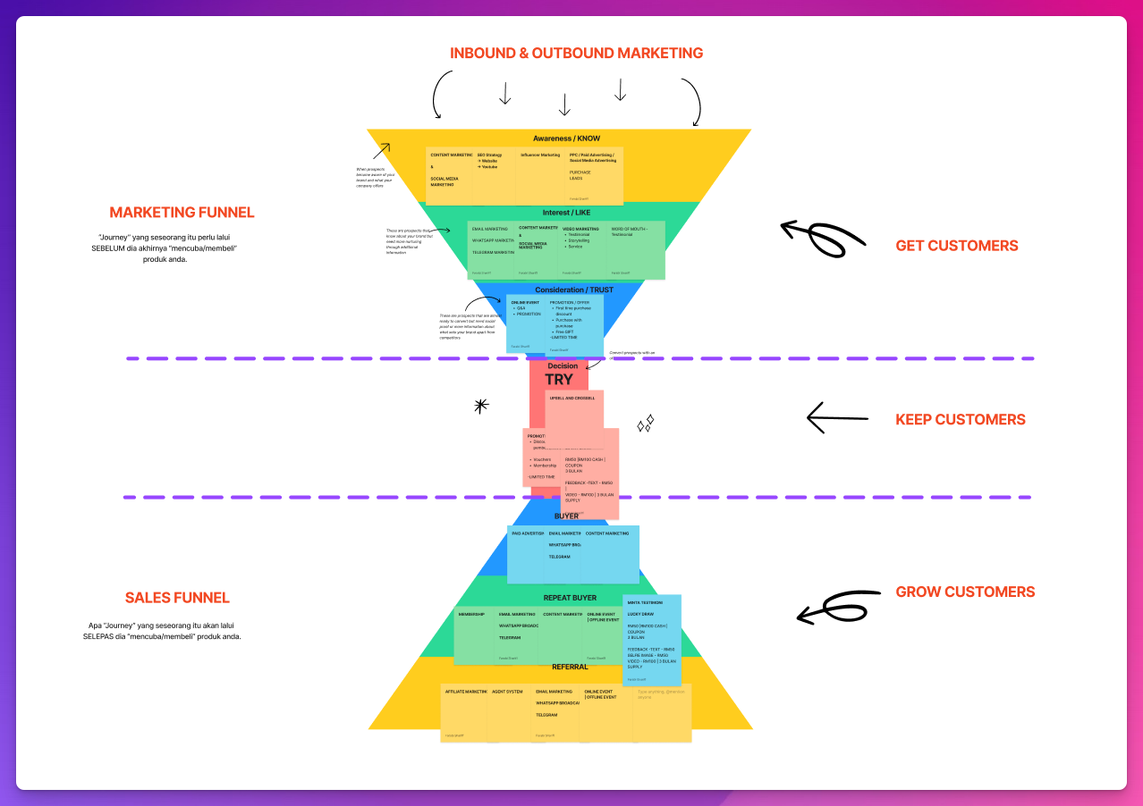 - Tiada marketing strategy yang jelas (awareness, consideration, conversion, retention).