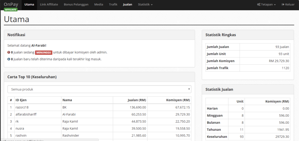 Sampai lah tiba waktu yang saya makin pandai selok belok bermain affiliate marketing, akhirnya saya berjaya buat duit pertama dengan affiliate marketing.