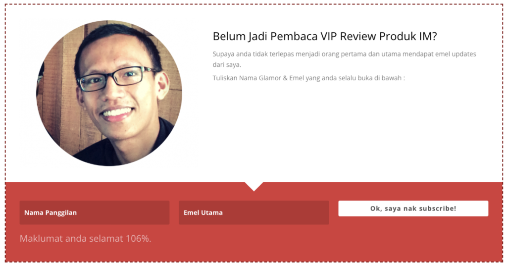Then yang tak beli lagi, saya follow up dengan email marketing. - Buat blog kemudian offer untuk subscribe email list.