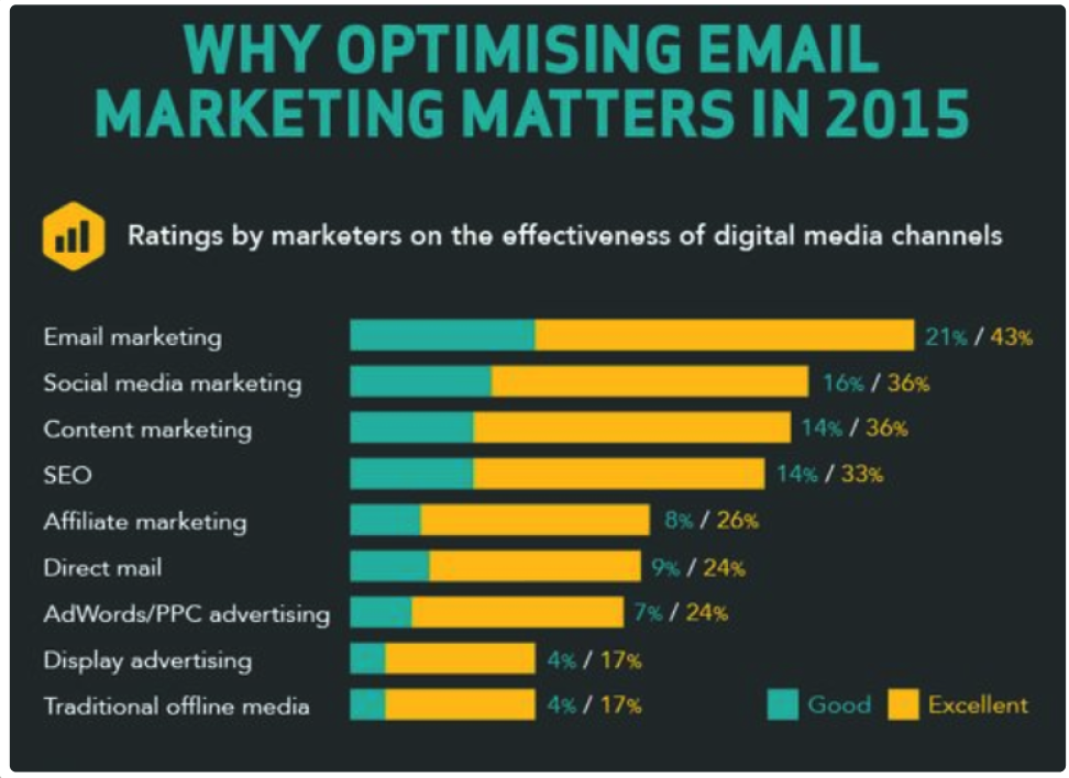 Dekat sini anda boleh lihat effectiveness email marketing berbanding marketing method yang lain seperti social media marketing sangat-sangat jauh beza.