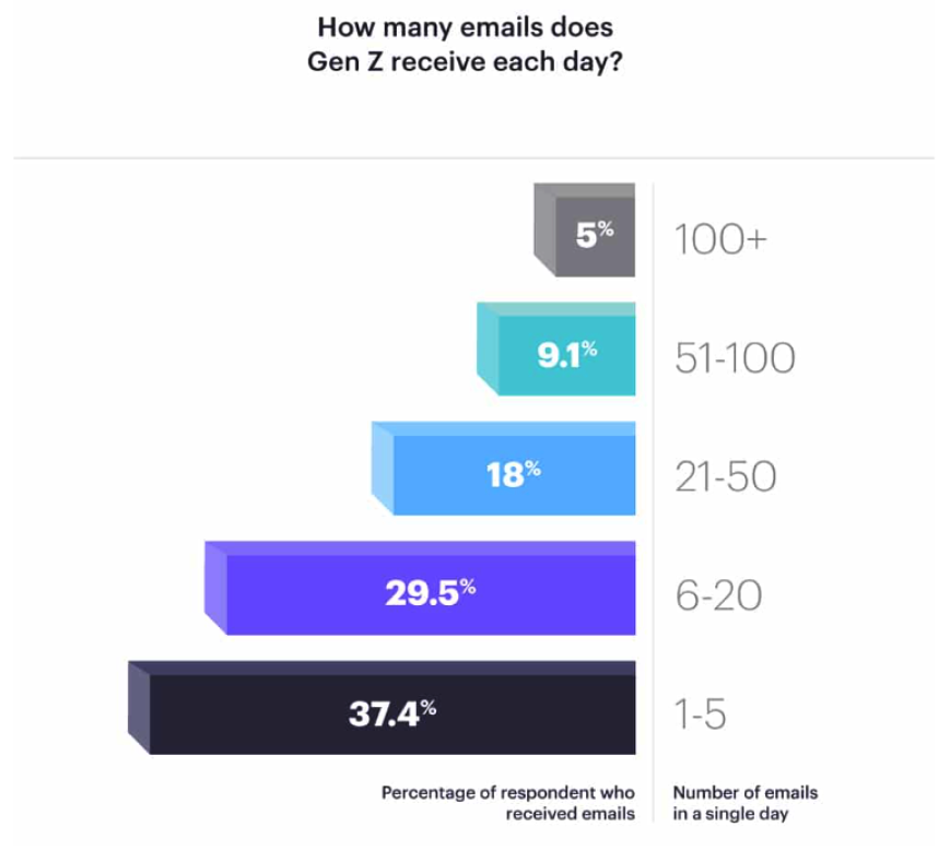 Boleh kata dalam 67% Gen Z terima 20 emel dan kurang dari tu.