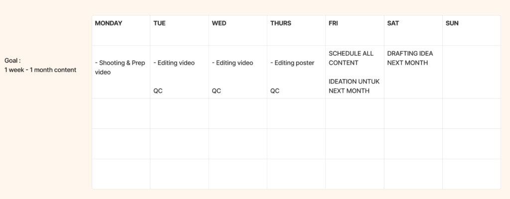 1. Mula dengan GOALS & TARGET. Tentukan jumlah poster & video untuk 1 bulan.
