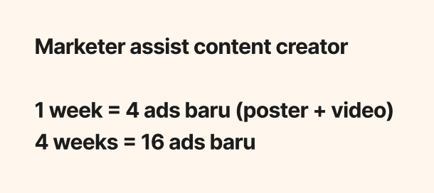 Jika 1 minggu KPI marketer ialah hasilkan minimum 4 ads baru (poster + video),