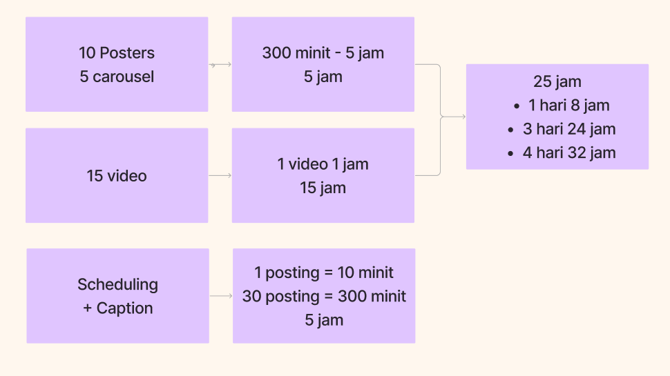 3. Jumlahkan masa yang digunakan untuk buat konten 1 bulan (poster & video)